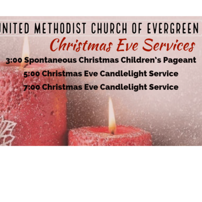 Calling all children! It is a UMC Evergreen Christmas tradition to hold a Spontaneous Christmas Pageant every Christmas Eve. All children present are invited to participate and no rehearsals are necessary. The pageant begins at 3PM on Christmas Eve. Children who would like to participate should arrive at 2:45PM to select a role and a costume. Adults: bring your cameras and your Christmas spirits! This is a Christmas experience you will never forget!