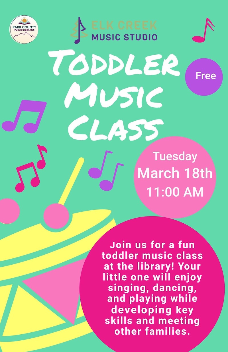 Toddler Music Class by Elk Creek Music Studio at Bailey Public Library to be held on Tuesday March 18th at 11:00am.
