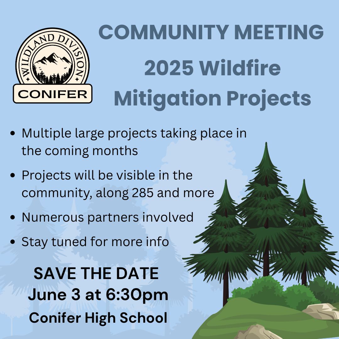 To help residents stay informed, the Conifer Wildland Division is hosting a community meeting where you can learn more, ask questions, and hear how these efforts will impact and benefit our community.