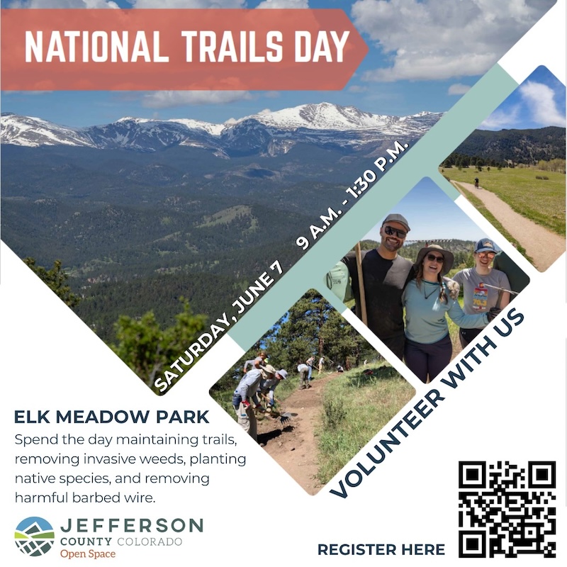 Spend National Trails Day outside giving back to your public lands. Jefferson County Open Space is hosting a volunteer project at Elk Meadow Park as a way to protect wildlife and continue to provide healthy and safe nature-based experiences to our visitors.