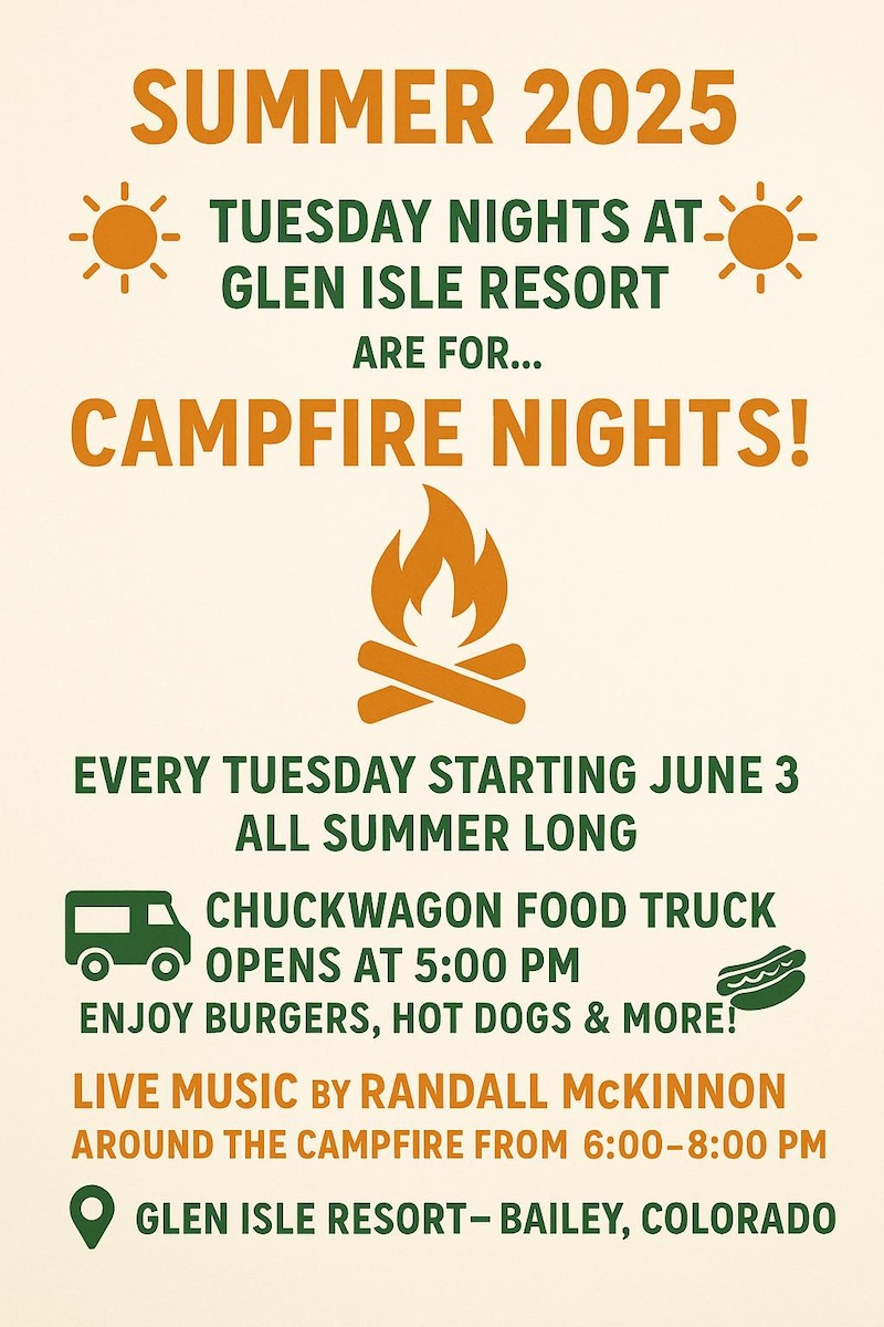 Tuesday nights are for Campfire Nights at Glen Isle Resort! Every Tuesday starting June 3rd the chuckwagon food truck opens at 5pm then live music by Randall McKinnon from 6-8pm.