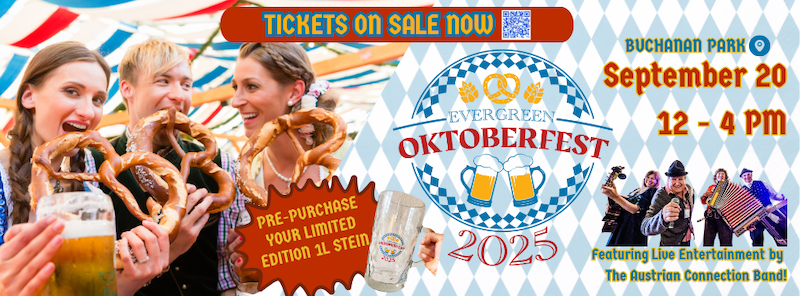 Join the ultimate Bavarian bash at Evergreen’s Oktoberfest on Saturday, September 20, 2025 (12–4 PM) at Buchanan Park! Dive into live polka bands, gravity-defying stein-hoisting, giant beer-pong showdowns, mouthwatering bratwurst, axe-throwing thrills, costume contests, kids’ corner magic, photo booths and brewery pours—fun for everyone!