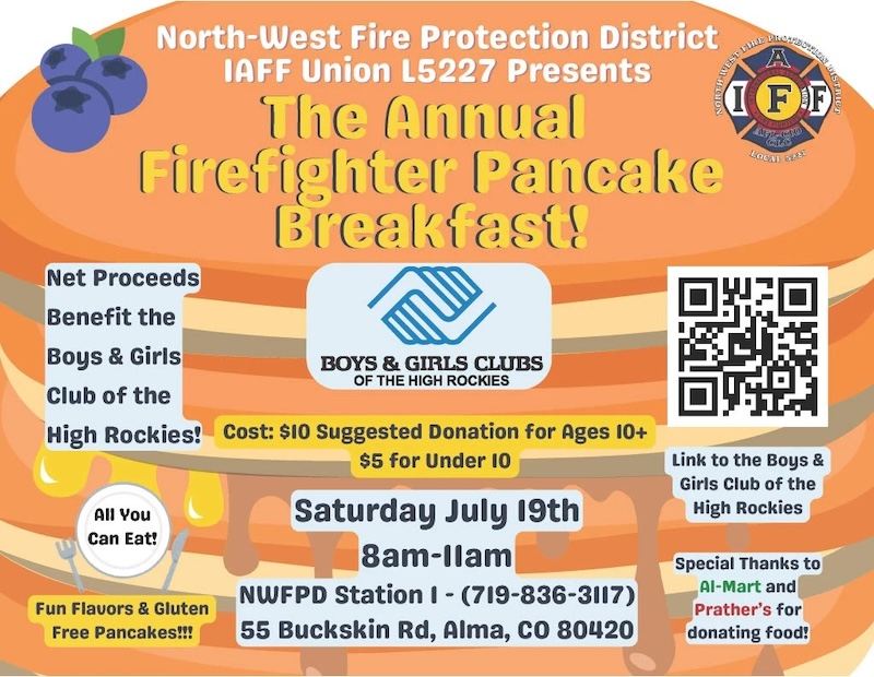 North-West Fire Protection District IAFF Union L5227 presents the Annual Firefighter Pancake Breakfast. Suggested donation of $10 for ages 10+, $5 for under 10. Net proceeds benefit the Boys & Girls Club of the High Rockies.