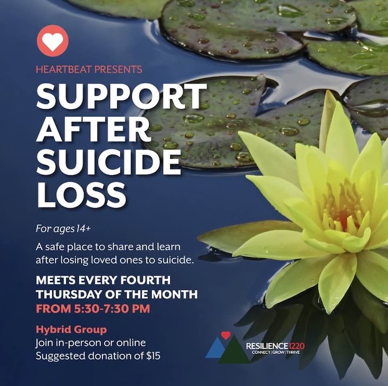 A safe place for share and learn after losing loved ones to suicide. Meets every 4th Thursday of the month from 5:30 to 7:30pm in-person or online. For ages 14 and up.