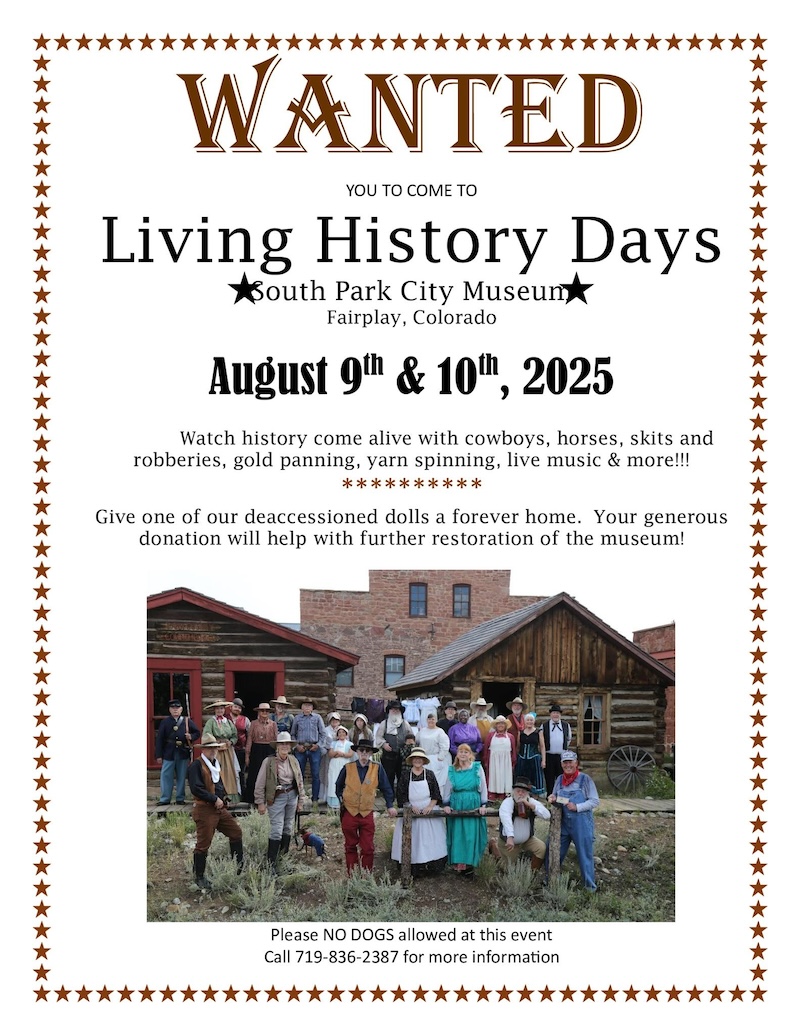 Watch history come alive with cowboys, horses, skits, and robberies, gold panning, yarn spinning, live music, and more! Give one of our deaccessioned dolls a forever home. Your generous donation will help with further restoration of the museum.