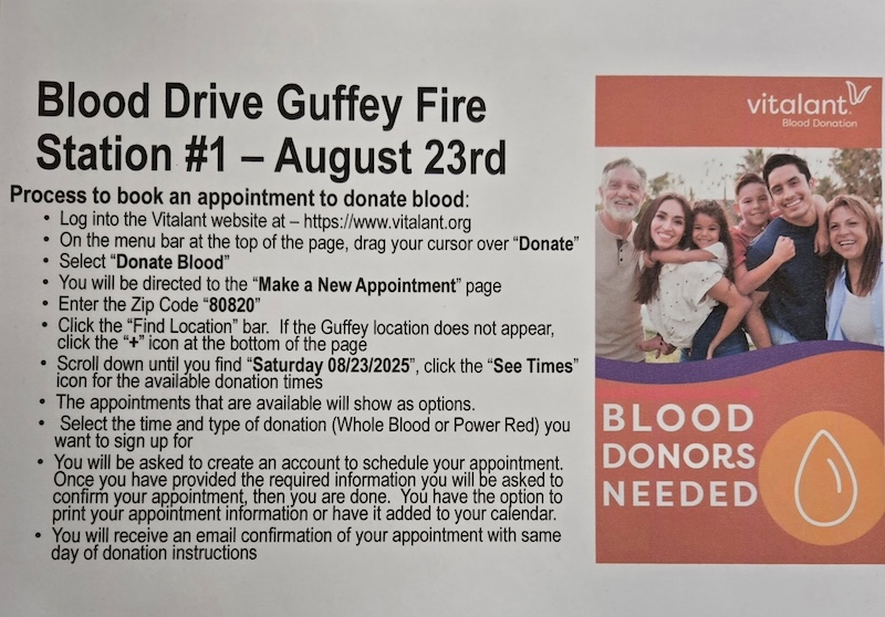 Location Southern Park County Fire Protection District Station 1, north end of the town of Guffey, CO