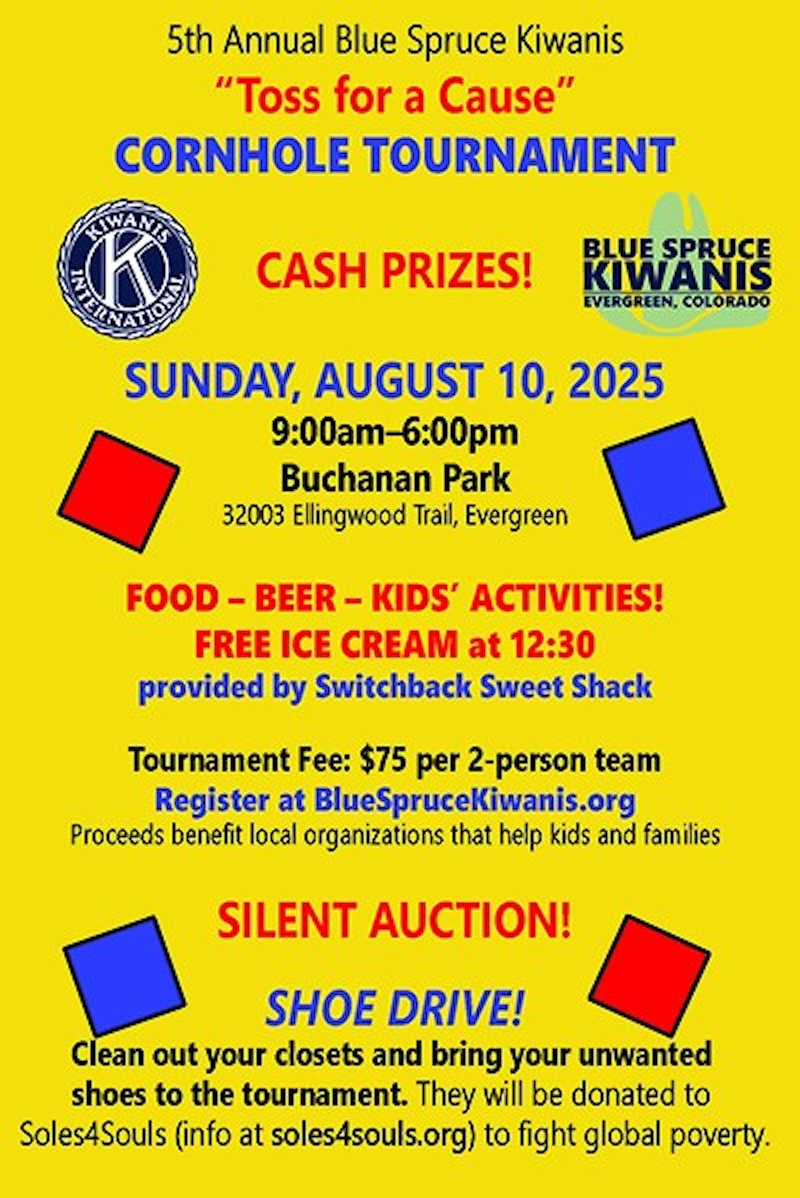 Register at https://www.bluesprucekiwanis.org/cornhole. $75 per team (2 people)