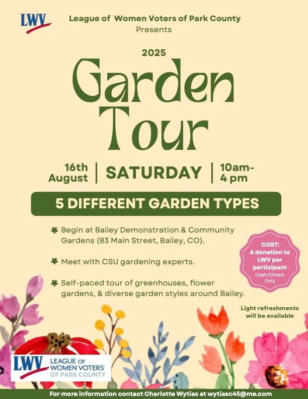 A do-your-own pace to see six different garden-types in the Bailey communities. Meet with CSU gardening epxerts. Maps provided. Silent auction. No cost: Donations welcomed