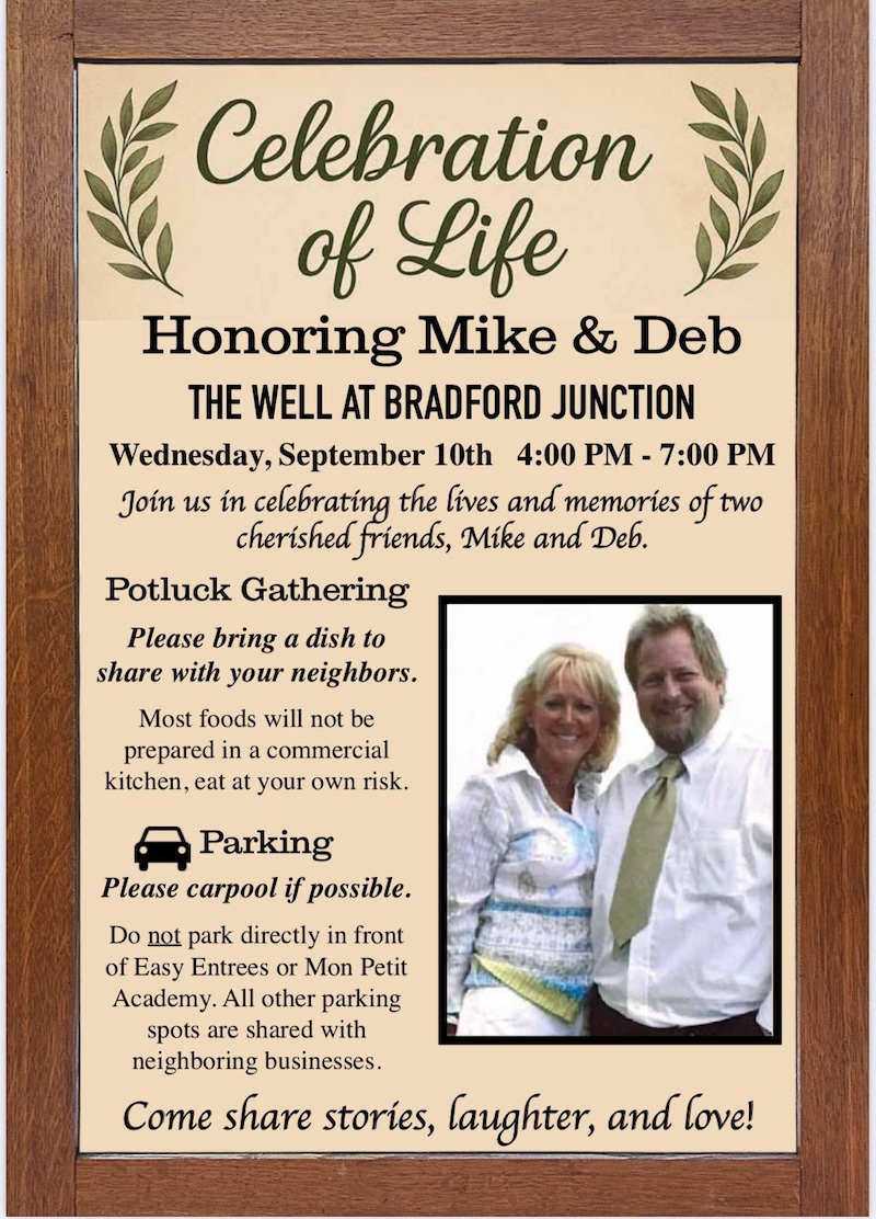 Tomorrow, we gather to celebrate the lives of Mike and Deb.