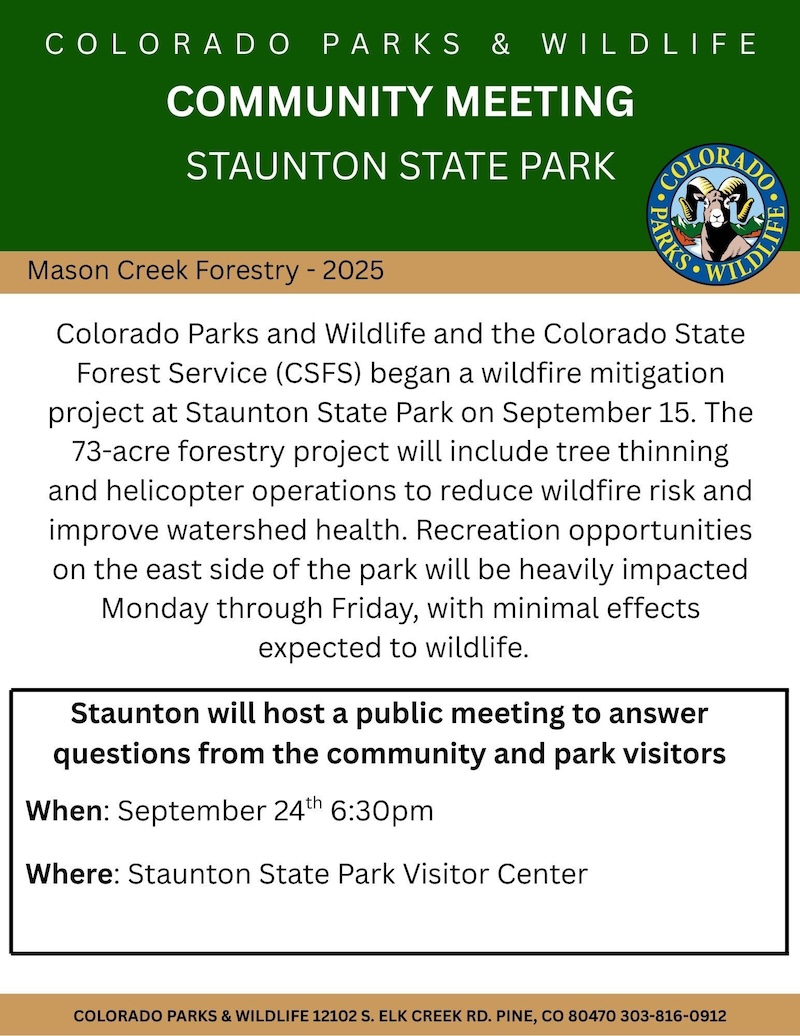 Staunton State Park is kicking off a wildfire mitigation project, and we want to keep our community informed. Join us for a public meeting to learn more about the work, how it may affect your visit, and why it matters for wildfire prevention and watershed health.