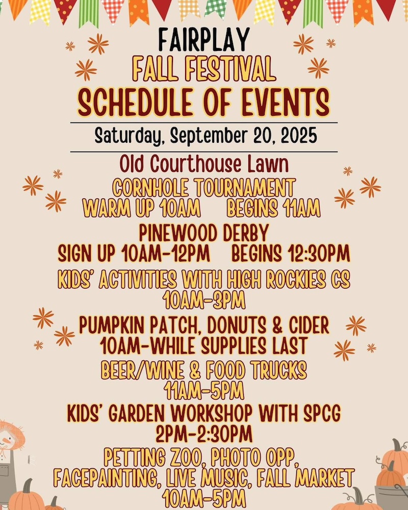The 2nd Annual Fairplay Fall Festival is today from 10am-5pm! Get your pumpkins early before they sell out!