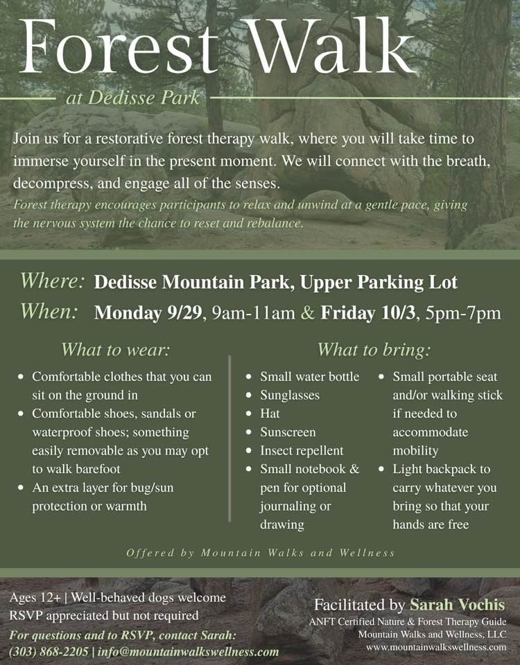Facilitated by Sarah Vochis, ANFT Certified Nature and Forest Therapy Guide, Mountain Walks and Wellness, LLC. mountainwalkswellness.com
