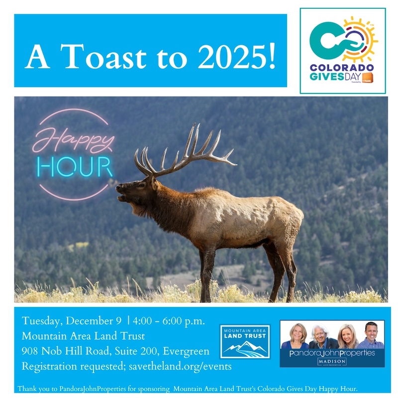 Join Mountain Area Land Trust (MALT) to toast our supporters on Colorado Gives Day, Tuesday, Dec. 9 from 4:00 – 6:00 p.m. Drop by to enjoy a beer, glass of wine, soda and light appetizers, as well as door prizes!