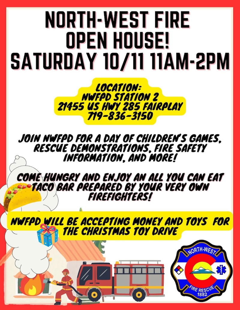 Come to North-West Fire’s Fairplay Station for our annual Open House! There will be free tacos and drinks, activities for children, and fire safety information for adults!