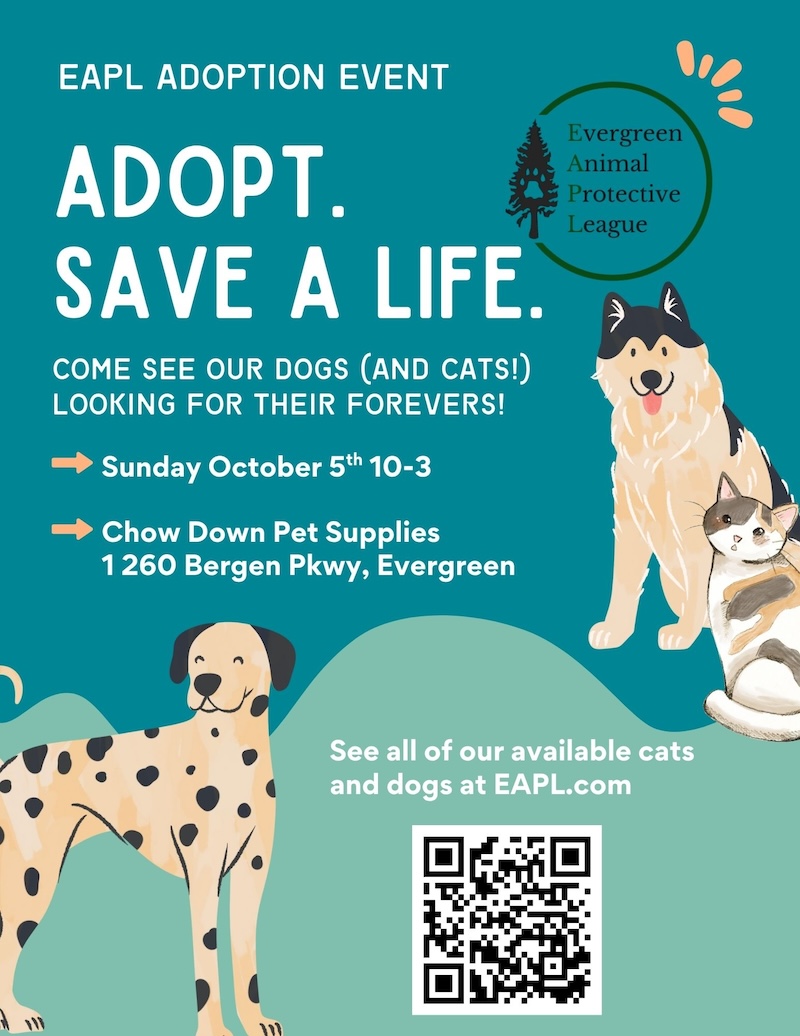 **Please note we do not adopt straight out of adoption events or the Cat Room. You must submit an application on EAPL and be approved before bringing one of our fur-babies home.