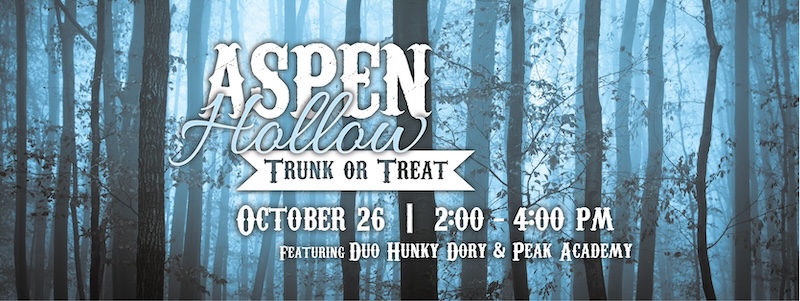 Aspen Ridge Church is hosting their annual Aspen Hollow Trunk Or Treat on Sunday October 26th from 2-4pm. It features duo Hunky Dory and Peak Academy.