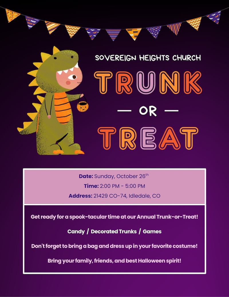 Wear your favorite costume and bring your friends, neighbors, and family for a safe, joy-filled afternoon of treats and fellowship.