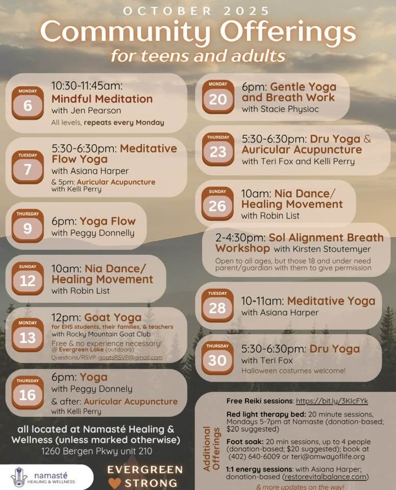 Robin is also a Brown Belt Nia Instructor and offers classes at Namaste. Neuromuscular Integrative Action (Nia) combines martial arts, dance arts, and healing arts for a dynamic physical workout and mindfulness practice. Nia is based on the pleasure principle--through movement we find health.