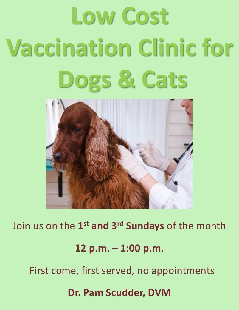 This Sunday, October 19th, we will be holding our vaccination clinic from 12 p.m. to 1 p.m. in the shelter parking lot. Bring prior shot records if you can.