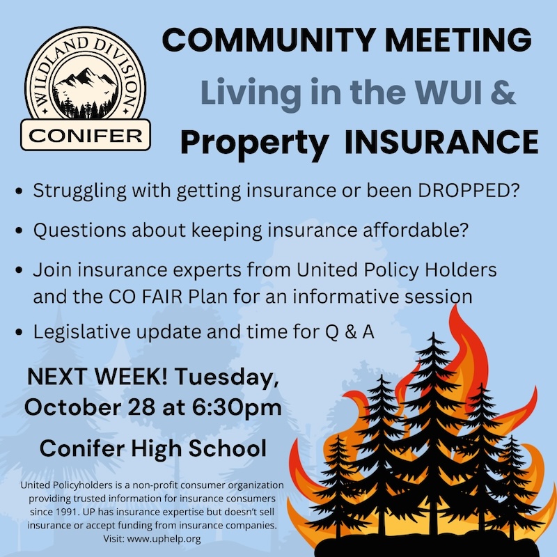 Join the Conifer Wildland Division for an important Community Meeting focused on living in the WUI and understanding your property insurance options.