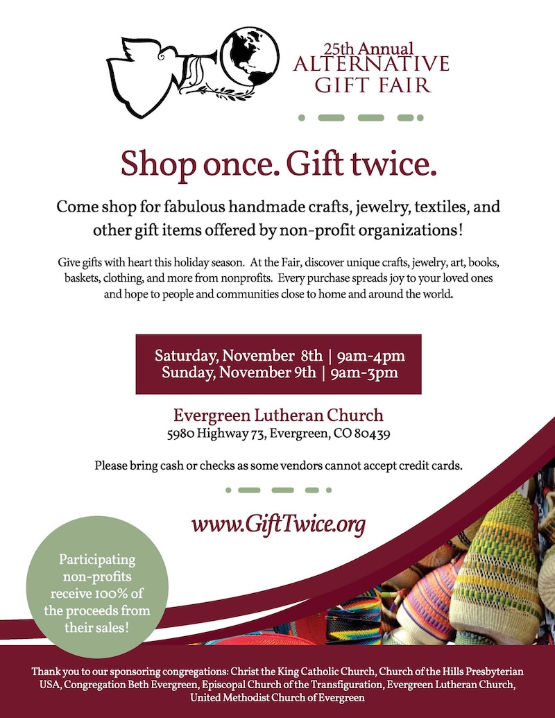 The Alternative Gift Fair features gifts and goods from incredible non-profit vendors. Find a gift to give for the holidays and, in turn, give the gift of support good causes both locally and around the world.