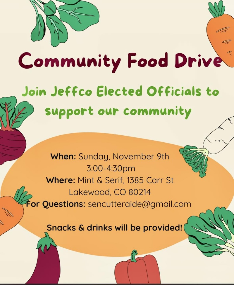 The loss of federal SNAP benefits is hitting our community hard. Jefferson County elected officials are coming together to host a food drive this Sunday from 3-4:30 p.m. at Mint & Serif in Lakewood!