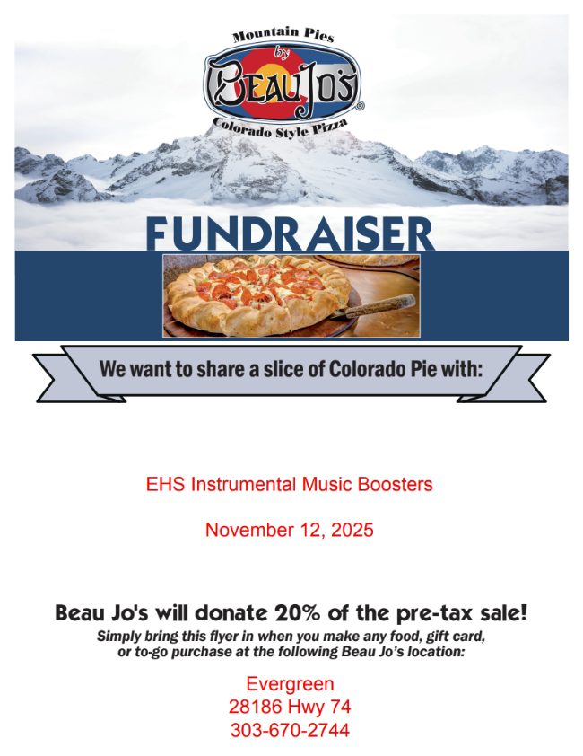 Enjoy some delicious food at Beau Jo's on Wednesday and support our music programs! Just present this flyer when you dine in or carry out!