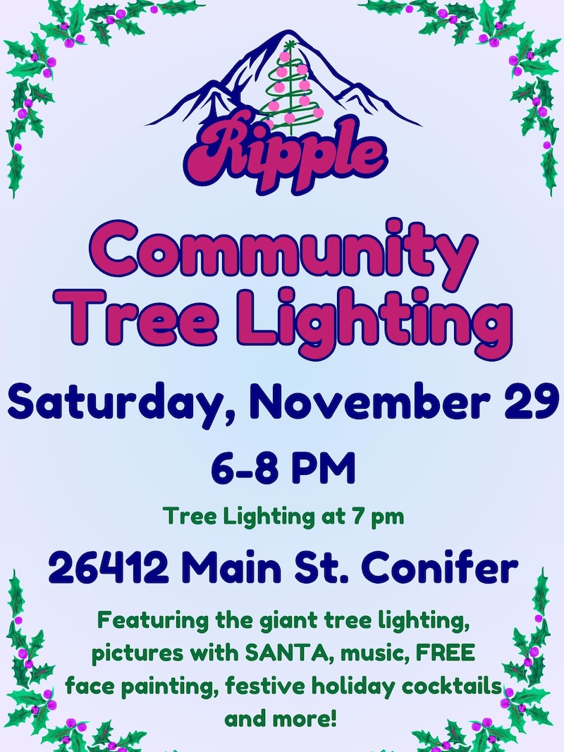 Join us at Ripple Pizza and Ice Cream on Sat Nov 29 6-8 pm for our joyful annual Holiday Kick-Off Celebration and Community Tree Lighting! Kick off the festive season with the enchanting glow of our giant Christmas tree lighting at 7 PM. Enjoy free face painting, visits with Santa, lively holiday music, delicious seasonal baked goods, and festive holiday cocktails. Bring family and friends to share in the cheer, create memories, and celebrate the magic of the holidays together!