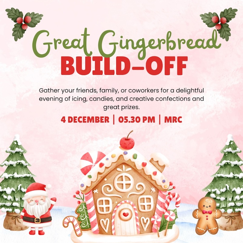 The Great Gingerbread Build-Off is back, and it’s sweeter than ever! Grab your rolling pins, rally your crew, and get ready to battle it out—cookie style. Whether you’re building a cozy cottage or a candy-coated castle, it’s all about creativity, teamwork, and holiday cheer. Join us for laughs, frosting-fueled competition, and serious bragging rights (plus a few surprises for the most “structurally sound” masterpieces).