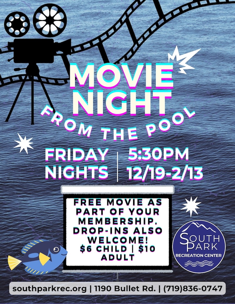 Looking for a fun activity for the kids on Friday evening? Check out our Swim and Movie night! Watch a movie from the pool at 5:30pm. Rated G.