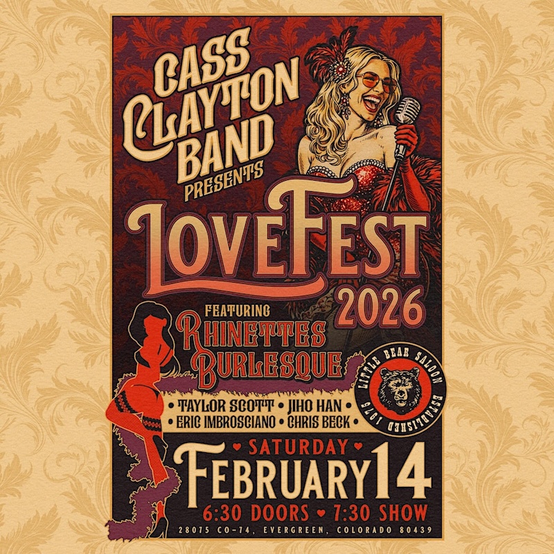 Presented by the Cass Clayton Band, LoveFest delivers a high-energy night of soulful live music paired with the sultry artistry of Rhinette’s Burlesque. Expect bold performances, captivating vocals, and an electric atmosphere designed to keep the night flowing from start to finish.