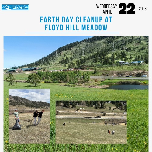 Join Mountain Area Land Trust (MALT) for our second annual Earth Day clean up at Floyd Hill Meadow, the iconic 18-acre parcel in Clear Creek County along I-70. The public property, gifted to MALT and permanently protected with a Conservation Easement last year, adjacent to Clear Creek Middle & High School and visible to millions who travel the I-70 corridor.