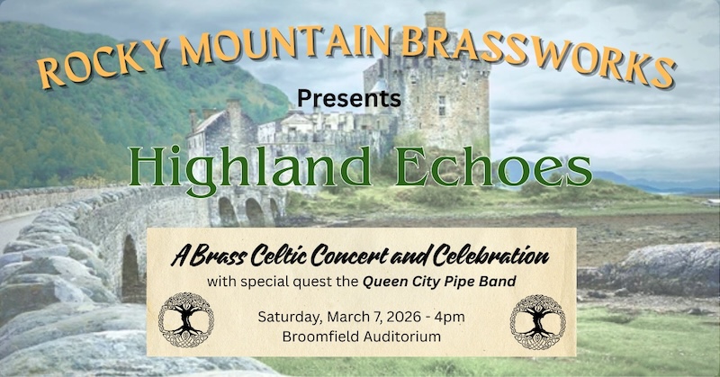Join Rocky Mountain Brassworks for an enchanting evening as we bring the rich traditions of Celtic music to life! From the misty hills of Ireland to the rugged landscapes of Scotland, Celtic culture has inspired hearts for centuries. Journey back to the days of the Iron Age, through the Roman era, and beyond, as we celebrate the enduring legacy of the Celts. With stirring melodies, spirited rhythms, and a touch of history, this concert promises to transport you to a world where music, culture, and tradition unite. Let the power of brass rekindle the timeless spirit of the Celts!