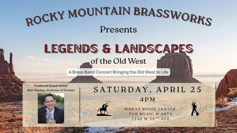 Saddle up for a thrilling afternoon of cinematic sound as Rocky Mountain Brassworks presents an exciting concert of iconic Western film music on Saturday, April 25 at 4:00 PM at the Wheat Ridge Center for Music and Arts.