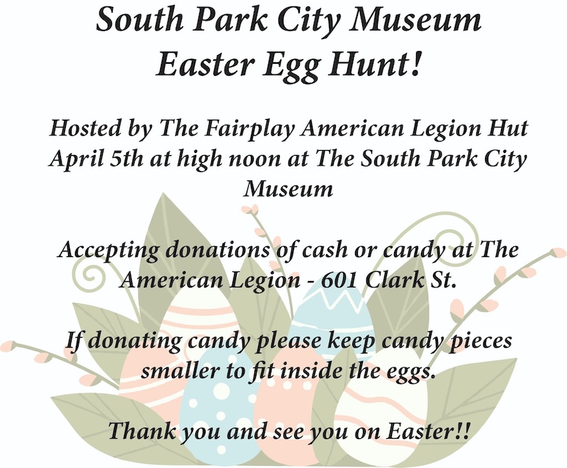 Hosted by The Fairplay American Legion Hut April 5th at hihg noon at The South Park City Museum.
