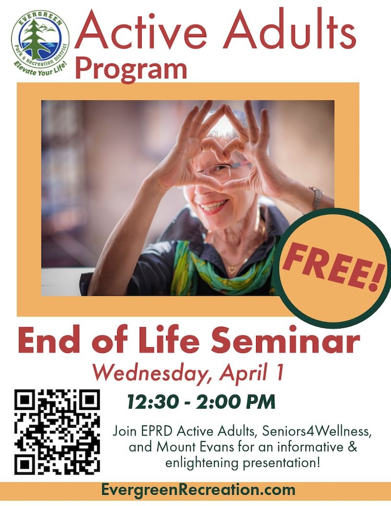 Join EPRD Active Adults, Seniors4wellness and Mount Evans for an enlightening and informative end of life seminar.