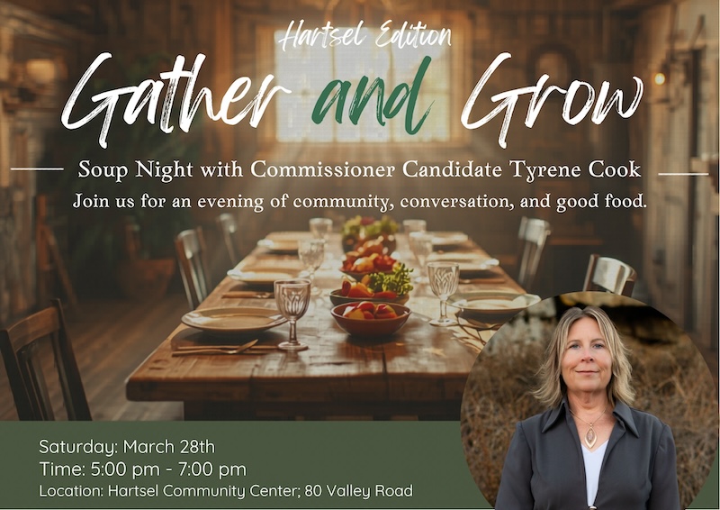 Join me this evening from 5–7 PM at the Hartsel Community Center (80 Valley Road) for a relaxed night of soup, bread, and good company. It’s a chance to connect, visit, ask questions, and spend time together as neighbors.