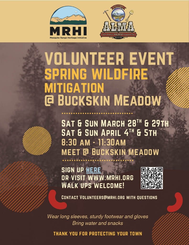 Wildfire mitigation continues! Join us at the Buckskin Meadow and help pull out slash for chipping. Wear long sleeves & pants, bring gloves if you have them.
