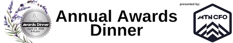 Celebrate the people, businesses, and community spirit that make Conifer shine at the Annual Awards Dinner hosted by the Conifer Area Chamber of Commerce. This mountain-elegant evening brings our community together for a delicious dinner, warm conversation, and the exciting announcement of this year’s award winners- honoring those who lead, serve, and inspire in the Conifer area.