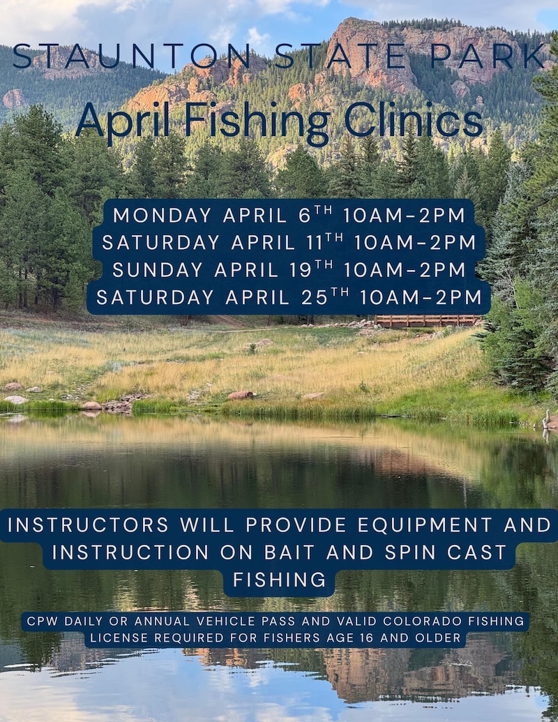 *State Parks Pass or Keep Colorado Wild Pass needed for park entry. Valid Colorado fishing license required for anyone 16 or older.