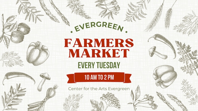 The Evergreen Farmers Market is back, right here in our parking lot every Tuesday from 10 AM–2 PM!