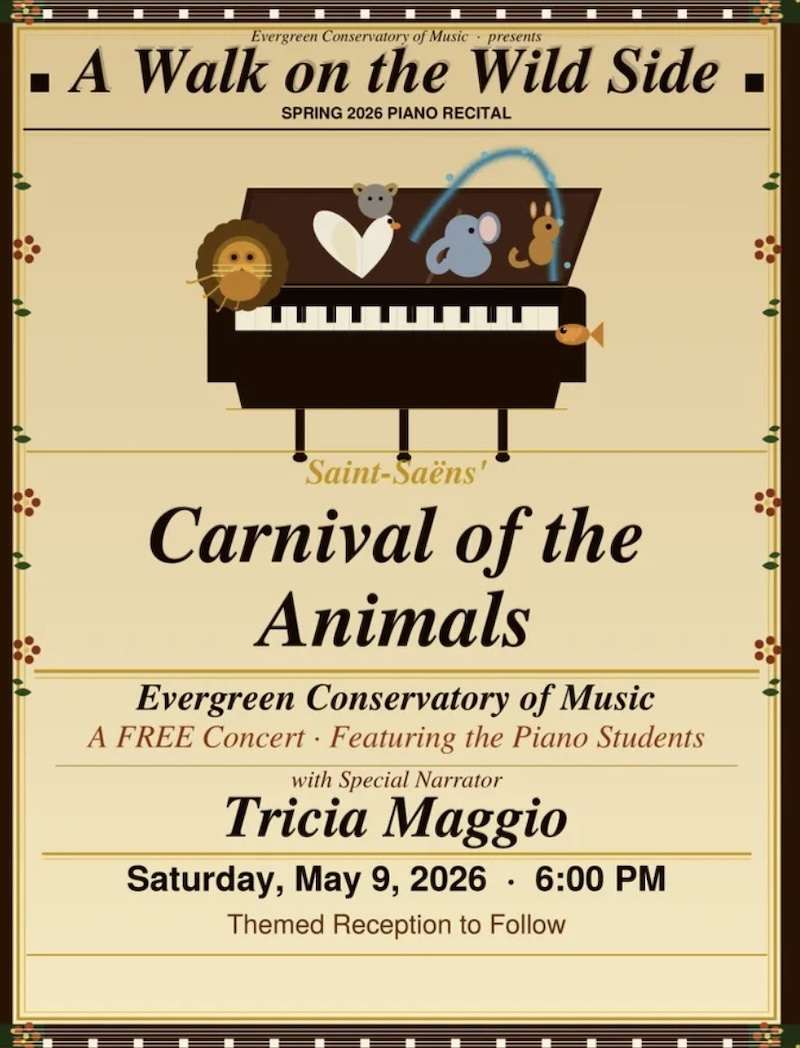 Camille Saint-Saëns’ beloved suite, The Carnival of the Animals. Following the suite, our Rising Stars will perform selected solo works demonstrating their technical mastery and musical expression.