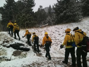 The crews on the Meyer Ranch Fire achieved 100% containment yesterday evening as expected. Snowfall in the area, while a favorable change in the weather, raises some concern for the safety of crews as they navigate the slippery rock terrain inspecting the area for hot spots and beginning clean up of tools and fire hose.