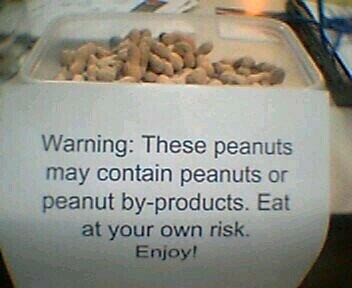 There was a cute one on the back page of Consumer Reports this month.....a beer cap printed with "remove cap before drinking". If you need that info you have probably had too many already.
