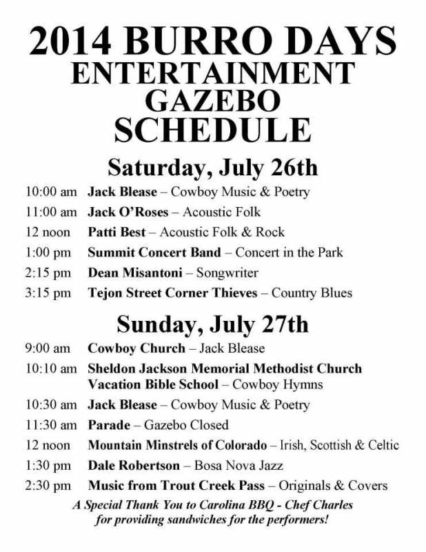 Over 10,000 people participate in festivities such as: burro races, llama races, kiddies pack dog races, parades, contests, over 140 arts & crafts booths, over 30 food vendor booths, local musical entertainment, dance & BBQ, pancake breakfast, Cowboy Church services and more!