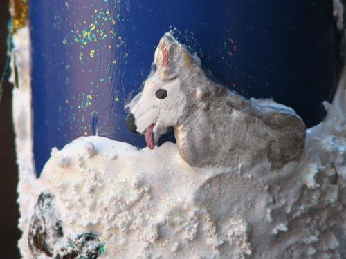 Icy's ornament, below, has white lettering, and a blue paw print painted on a soft, silver background.