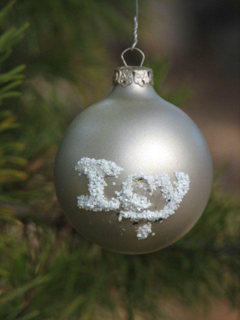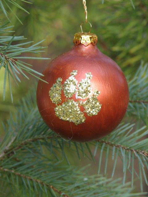Old-fashioned, 2" glass ornaments with your pet's name on one side, and a paw print on the other.