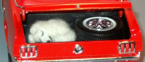 When she gets back to her 1966 Candy Apple Red Mustang [drool], she hears a strange, soft sound. A glance inside