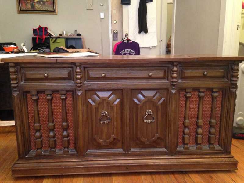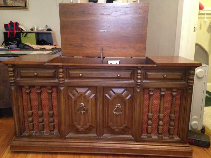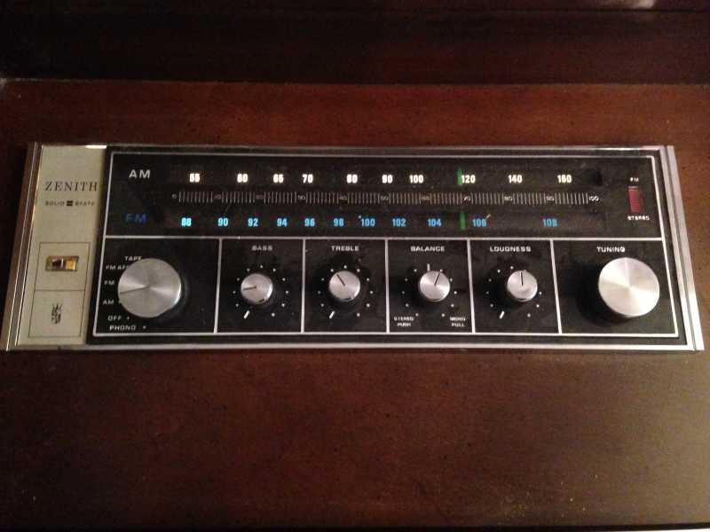Zenith- model D939 record player/ AM-FM console offered for sale.