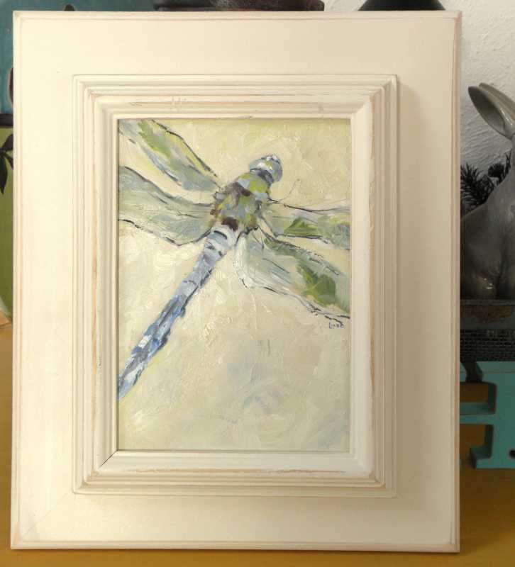 Just off my easel and on it's way to my gallery in Conifer; when she is dry that is... Luna Mandala! "Dragonfly" Oil on textured panel in custom frame! FUN!